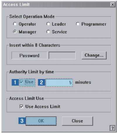 User authorization is automatically changed to ‘Operator’ after the set period of time.