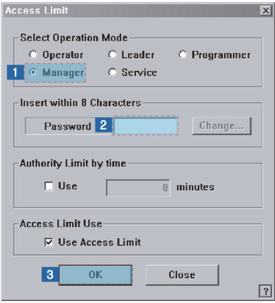 (1) Select the <Manager> option button in the <Select Operation Mode> group
