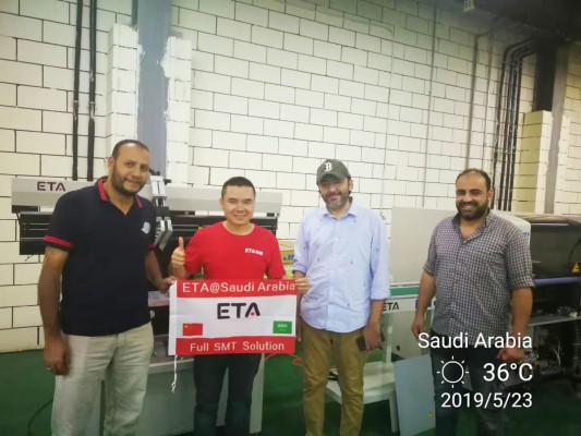 This customer has been working with ETA since 2019. The ETA professional team has been recognized by customers. In June 2919, ETA engineers went to Saudi Arabia to install and train SMT machines for customers and help customers to produce smoothly.